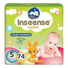 Купить Подгузники Inseense Classic+ S (4-8 кг) 74 шт