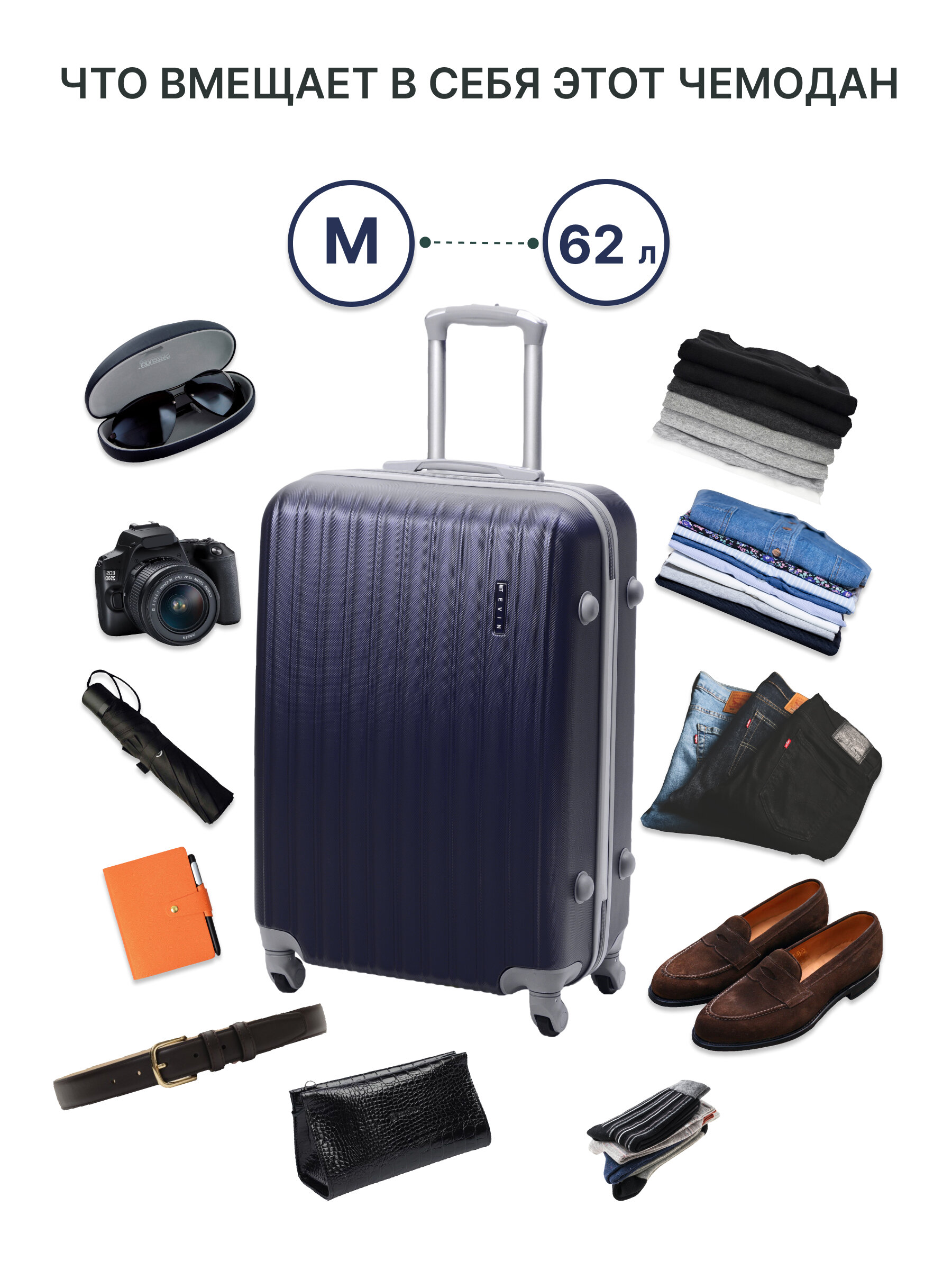 Чемодан TEVIN 62 литра ABS пластик размер M