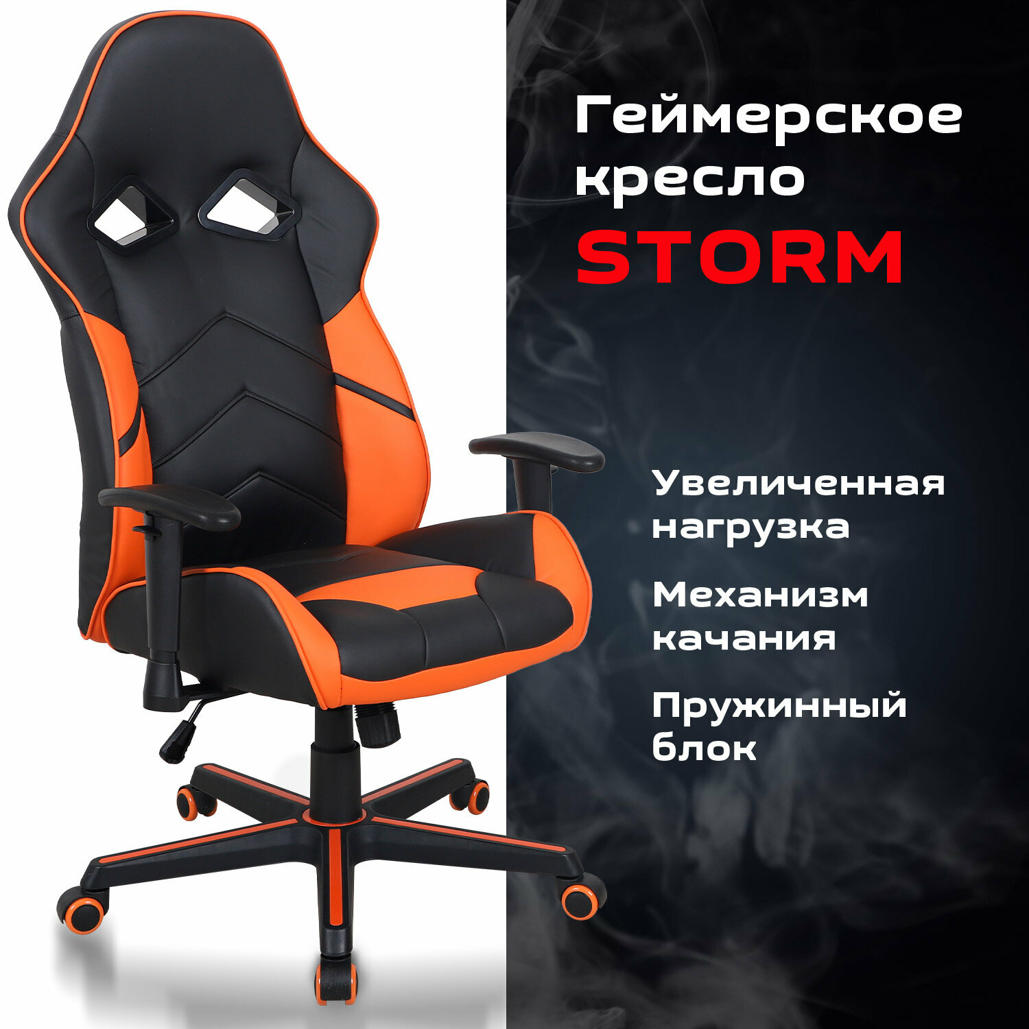 Кресло компьютерное BRABIX «Storm GM-006», регулируемые подлокотники, экокожа, черное/оранжевое, 532502 интересное: