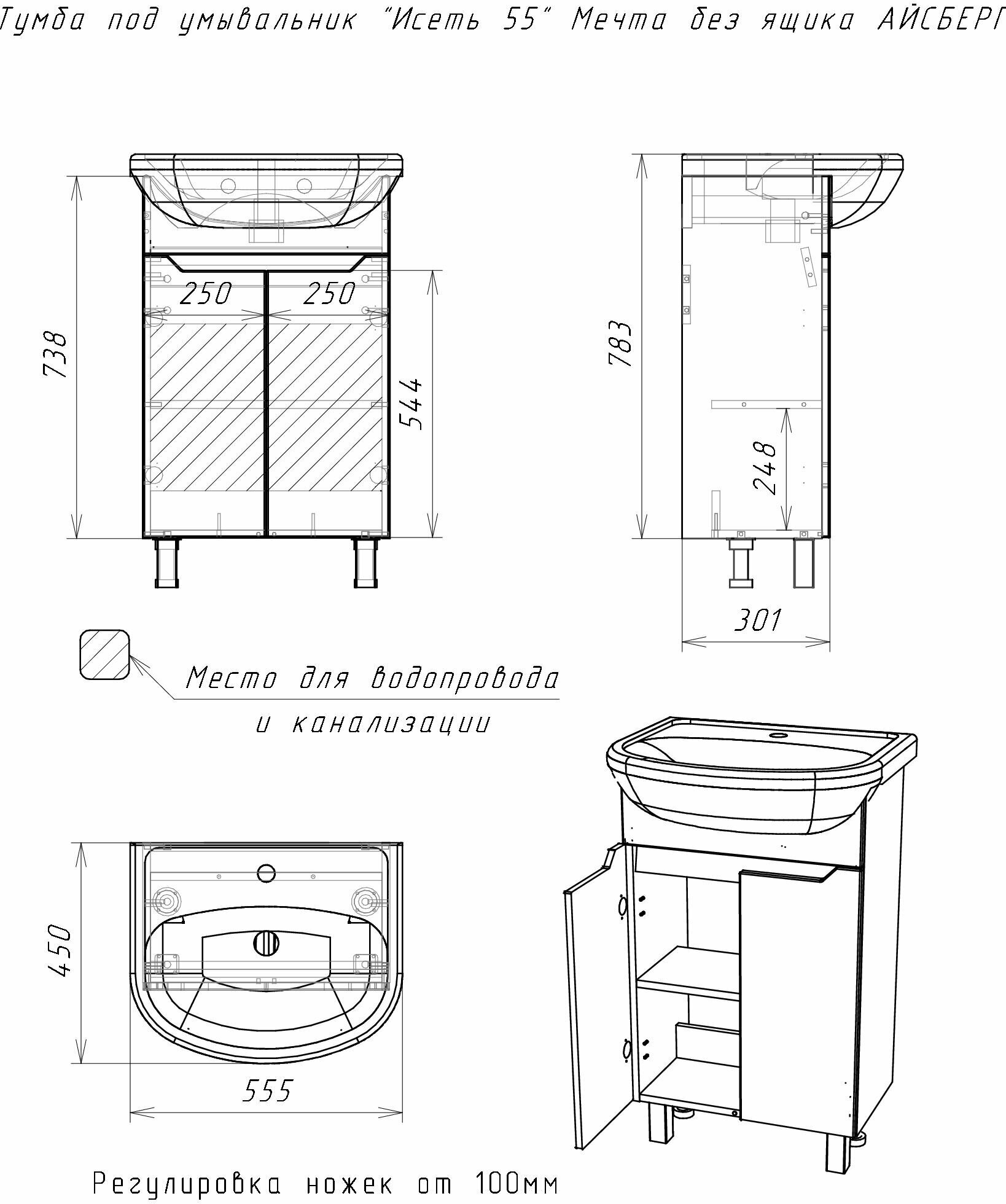 Тумба под умывальник "Исеть 55" Мечта без ящика айсберг интересное: