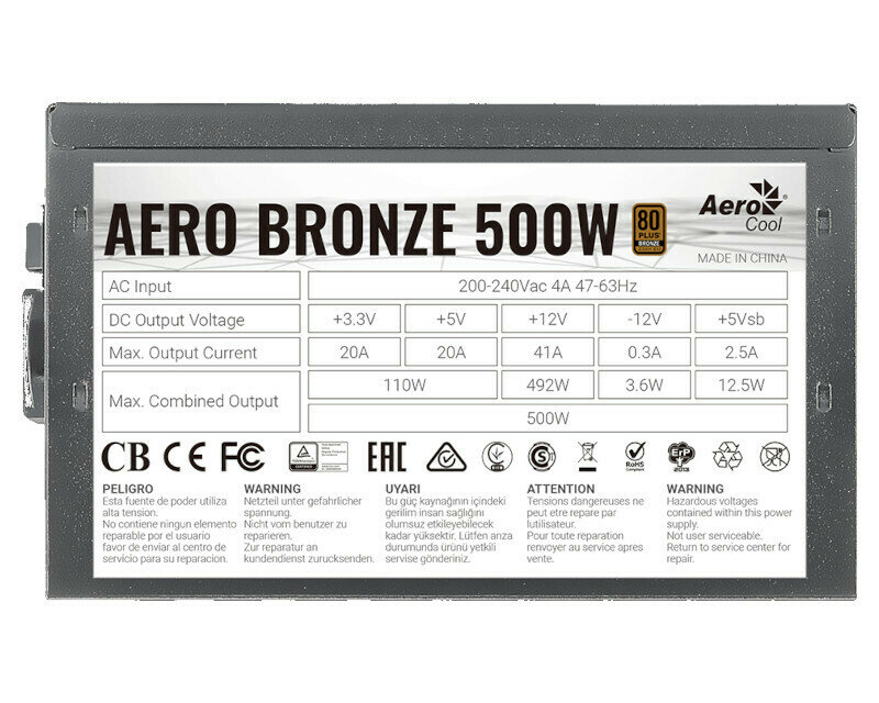 Блок питания 500W AeroCool Aero Bronze (EN53950)