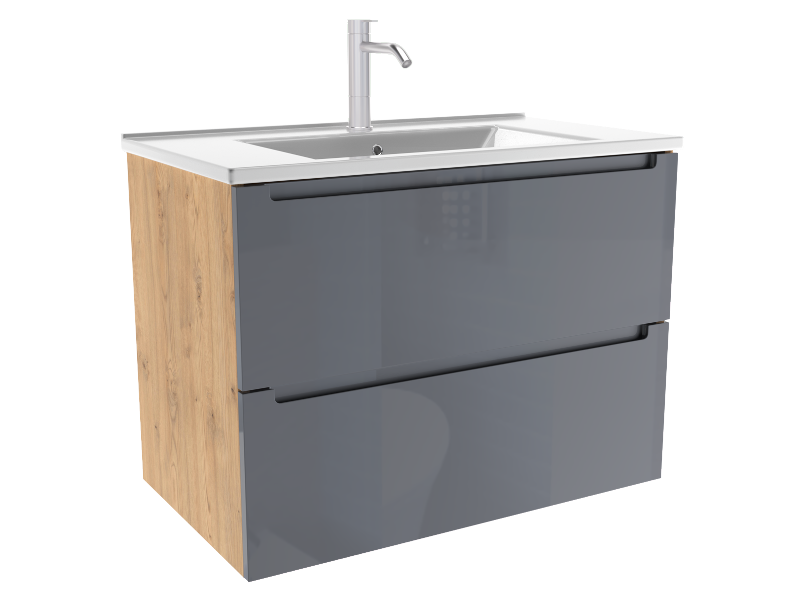 Тумба для ванной комнаты ЗОВ Эридан, с умывальником, Графит глянец/Дуб 80