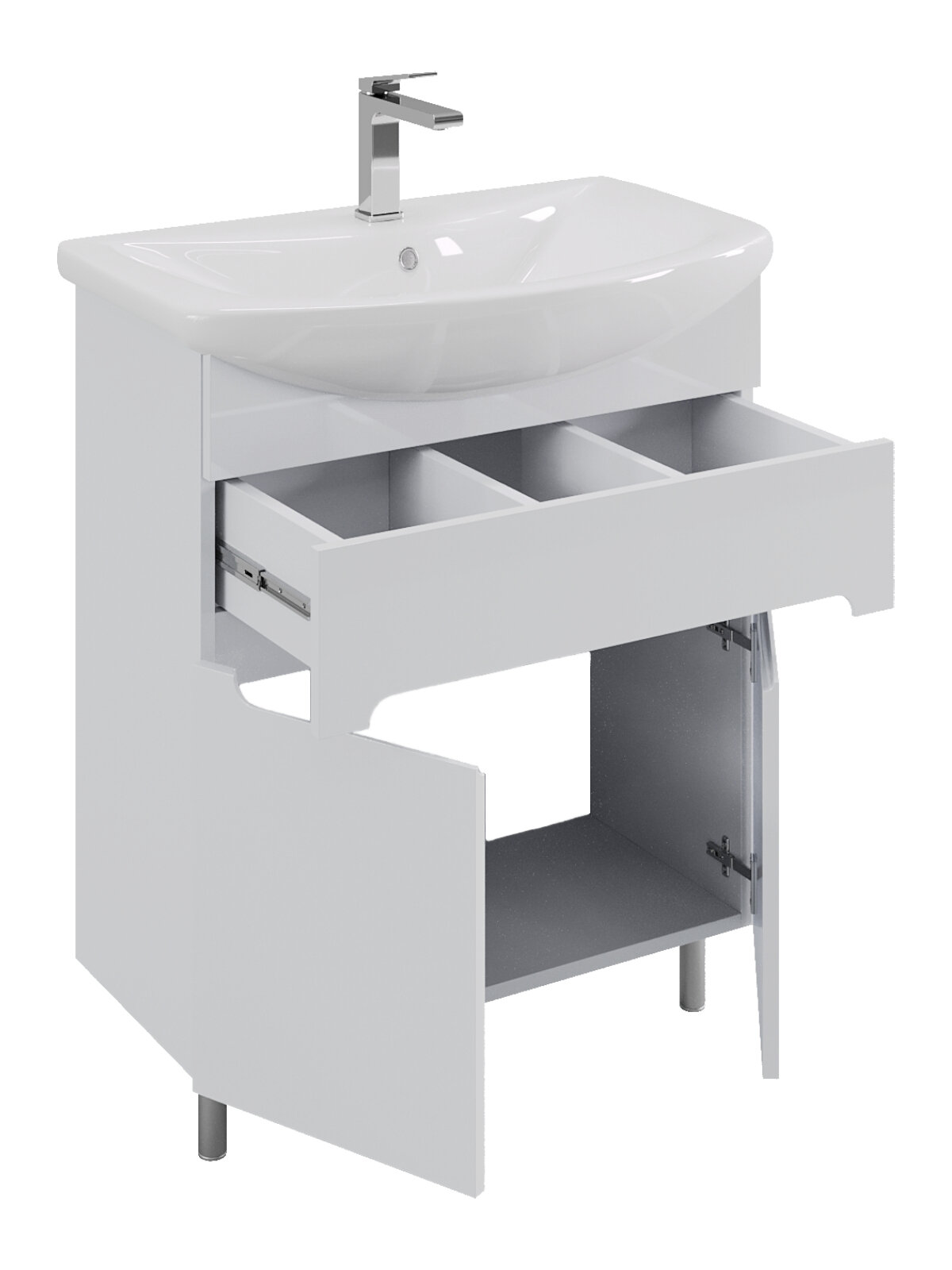 | Дополнительная информация | Тумба с умывальником для ванной комнаты, напольная. Фасад EGGER МДФ 16 мм в эмали (белый глянец производство - Италия), фрезеровка. Корпус ЛДСП 16 мм. Интегрированные ручки. Один выдвижной ящик, две дверцы, ножки 2 шт. Упаковка: картон, пленка, уголки. |