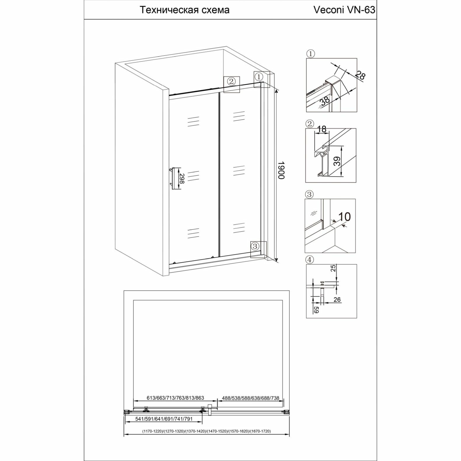Душевая дверь в нишу Veconi VN63-120-01-19C3