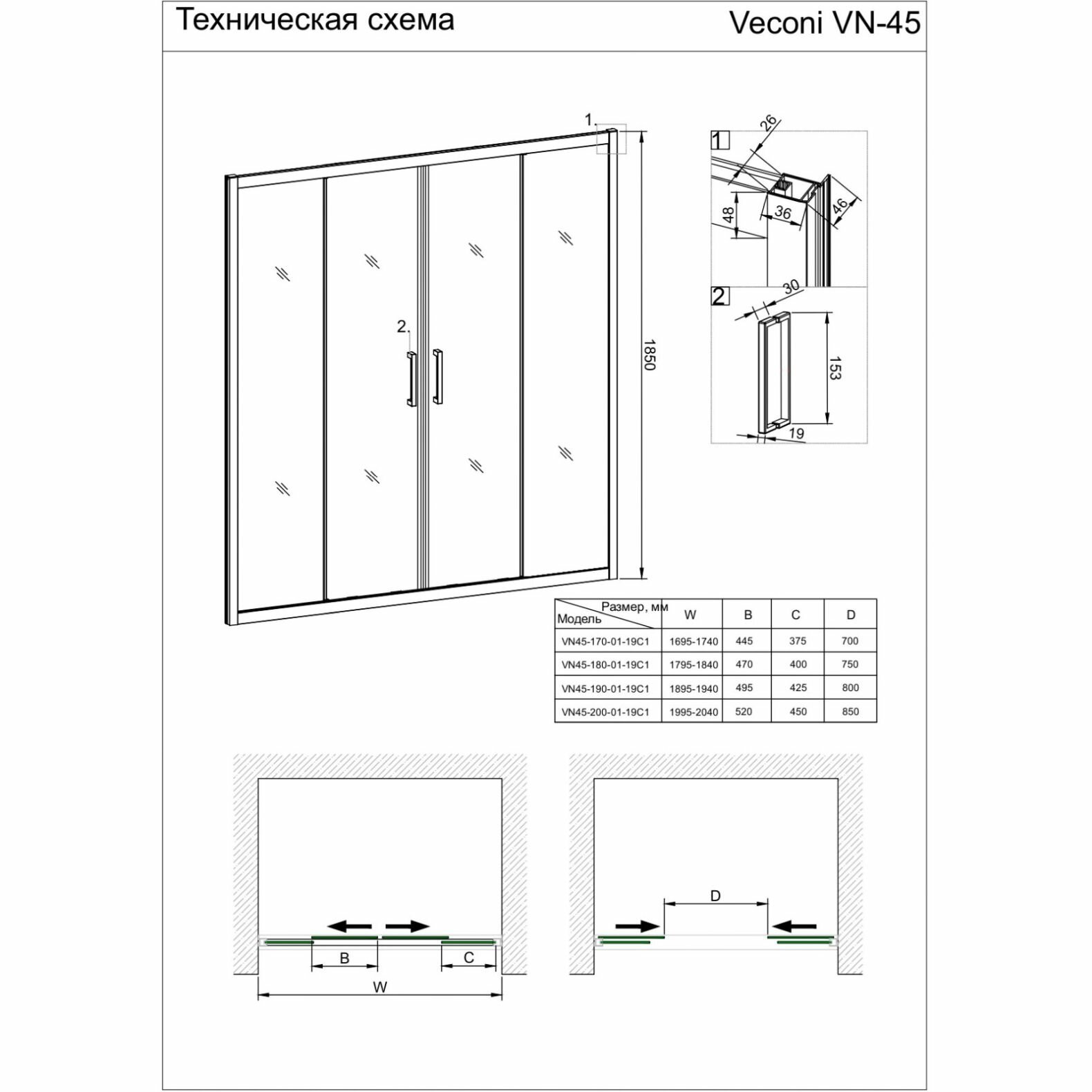Душевая дверь Veconi Vianno 120x185 см стекло прозрачное профиль хром механизм раздвижной (VN45-120-01-19C1) интересное: