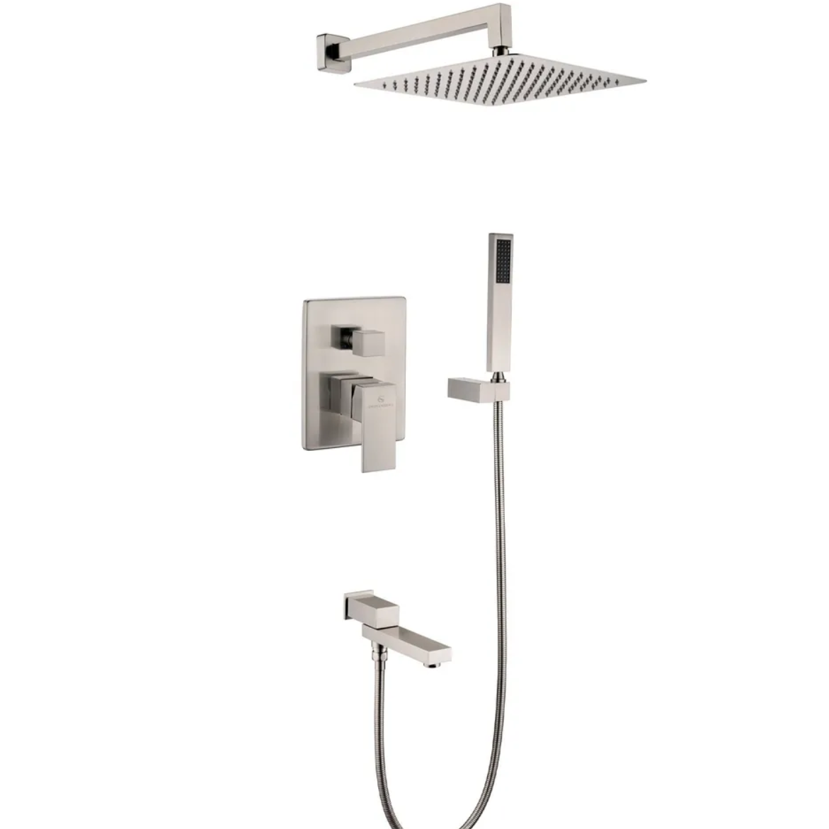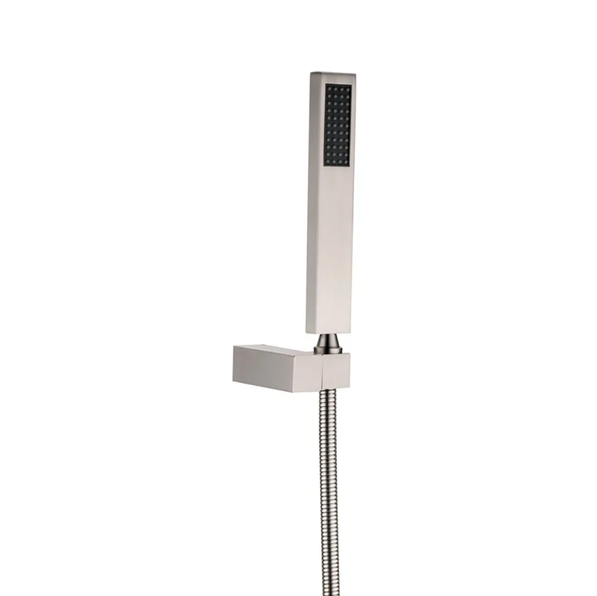 | Комплектация | вентиль / верхний душ / держатель лейки / излив для набора воды / кронштейн / лейка / ручной душ / шланг |