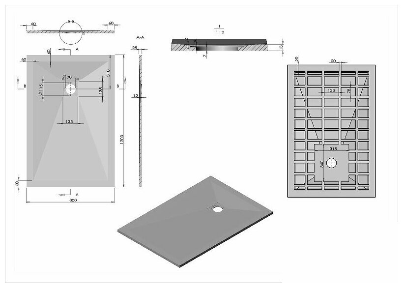 Поддон для душа Vincea из искусственного камня VST-4SR8012G, 1200*800*25, серый