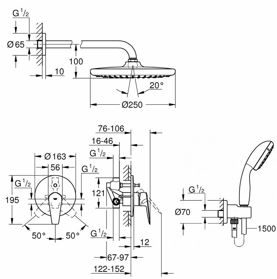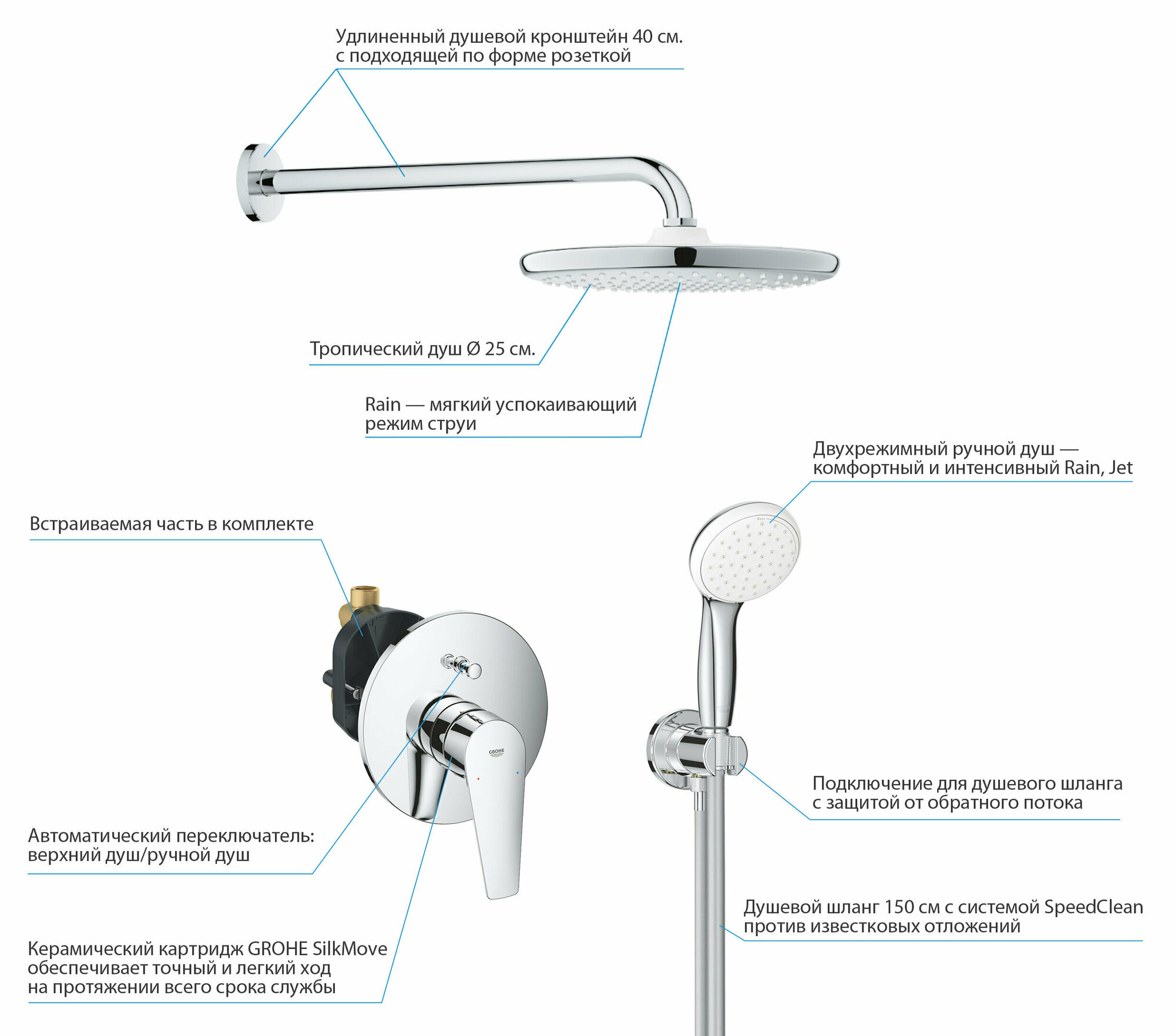 Душевая система с тропическим душем Grohe BauEdge Professional 250, хром интересное: