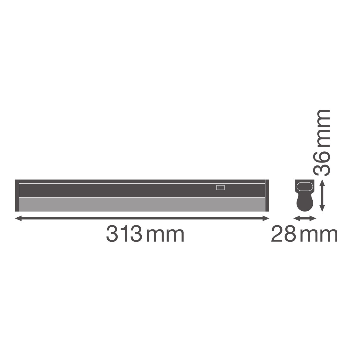 Светильник светодиодный линейный LEDVANCE 300 мм, 4Вт, 4000K, дневной свет, 400лм, IP20 белый, с выключателем, потолочный, для кухни