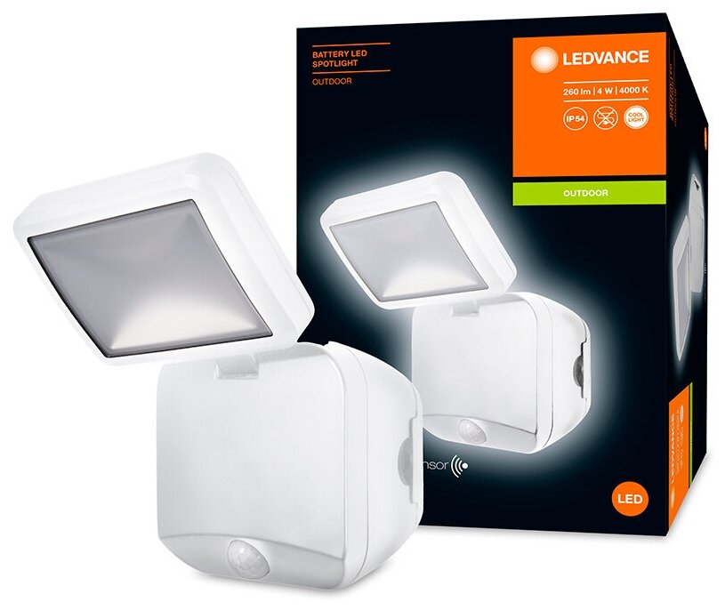Светильник светодиодный навесной уличный LEDVANCE SPORTLIGHT SINGLE (4058075227385) 215х40х250 мм 4 Вт 4000К холодный свет матовый IP54 белый с датчиком движения и света интересное: