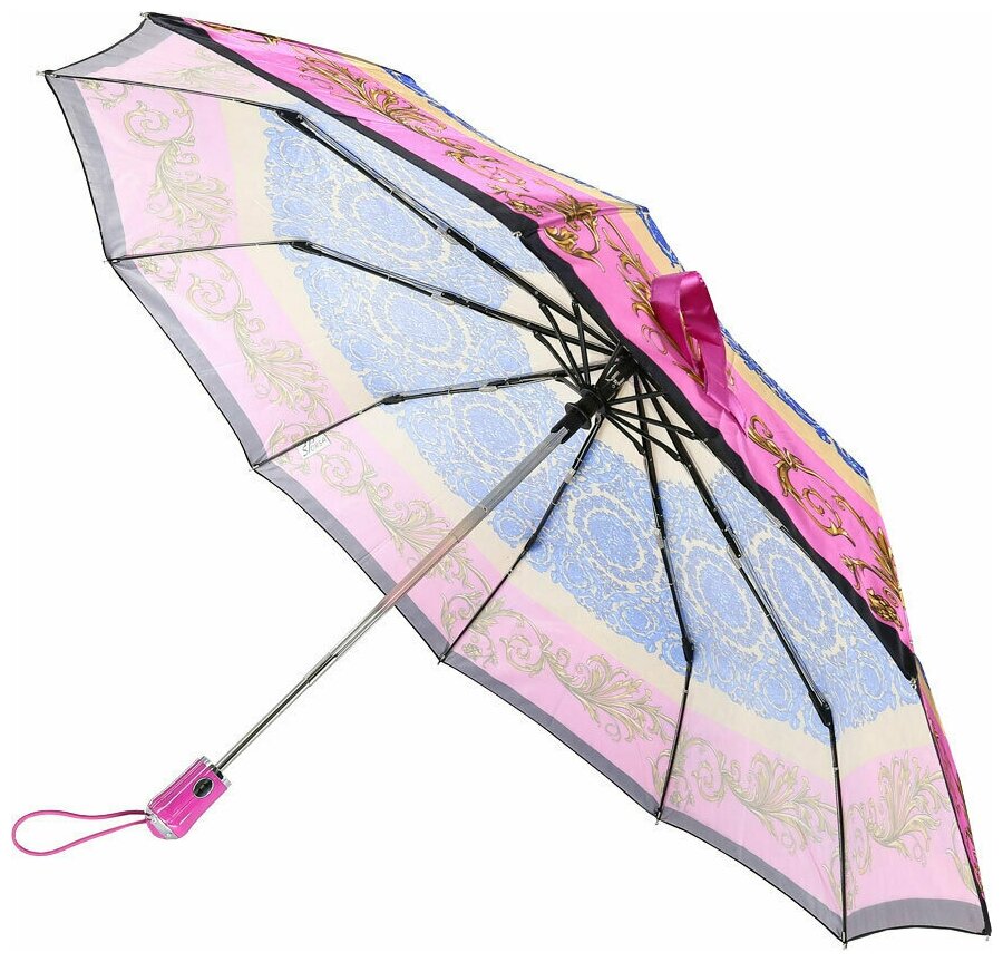 Зонт "Три Слона" женский №310-5, купол D=103 см, 10 спиц, суперавтомат бежево-черный