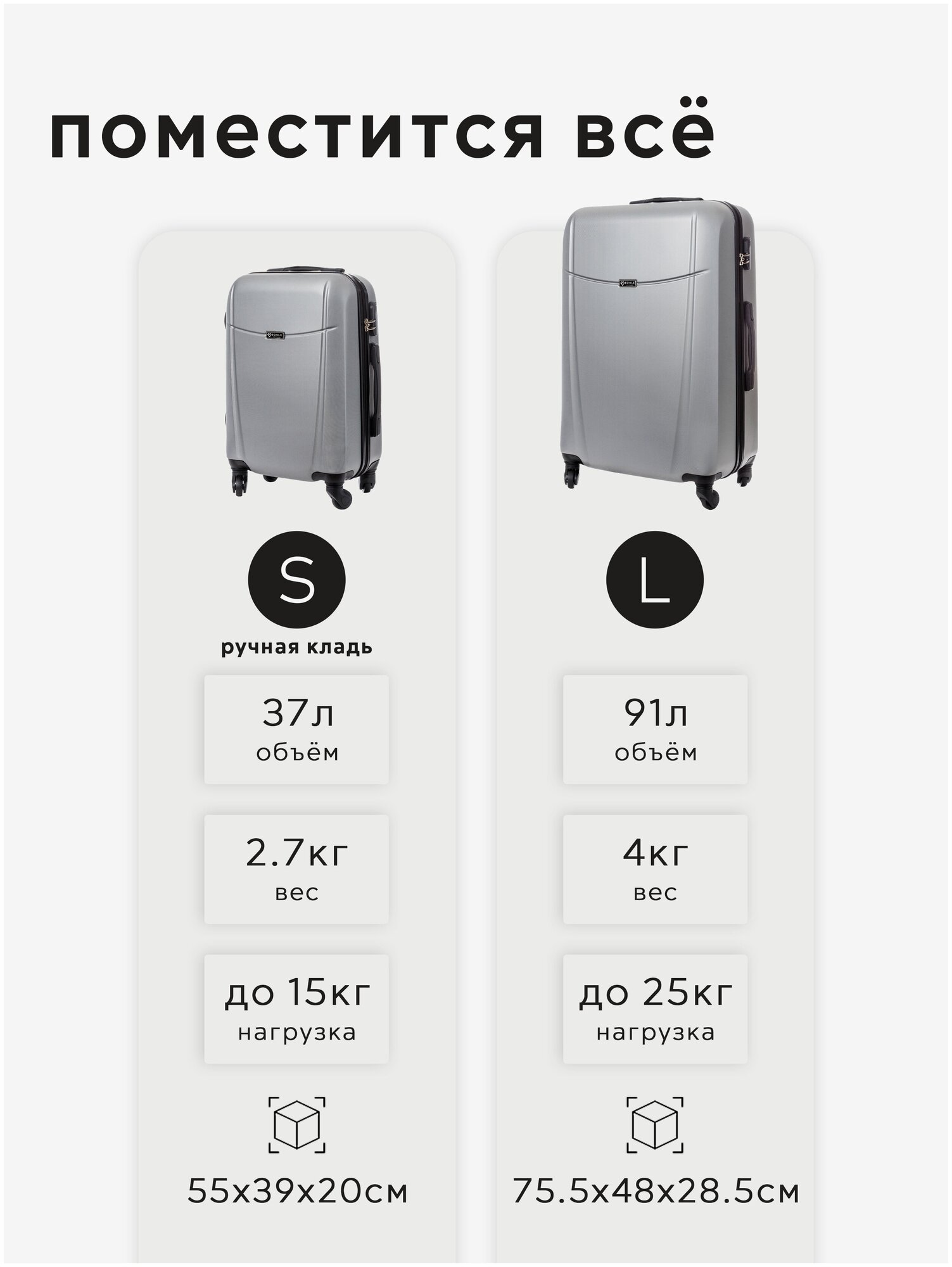 | Количество чемоданов в комплекте | 2 |