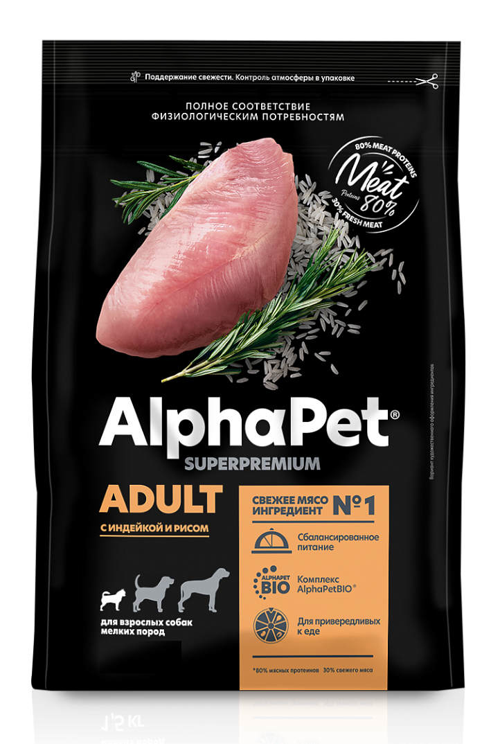 Купить ALPHAPET SUPERPREMIUM Сухой корм для взрослых собак мелких пород с Индейкой и Рисом