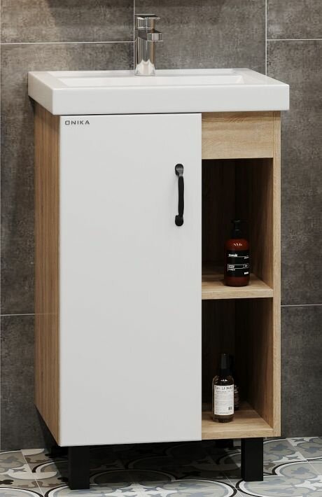 Тумба с раковиной Onika Тимбер 50, неапольная цвет: белый матовый/дуб сонома, ум.Фостер 50 интересное: