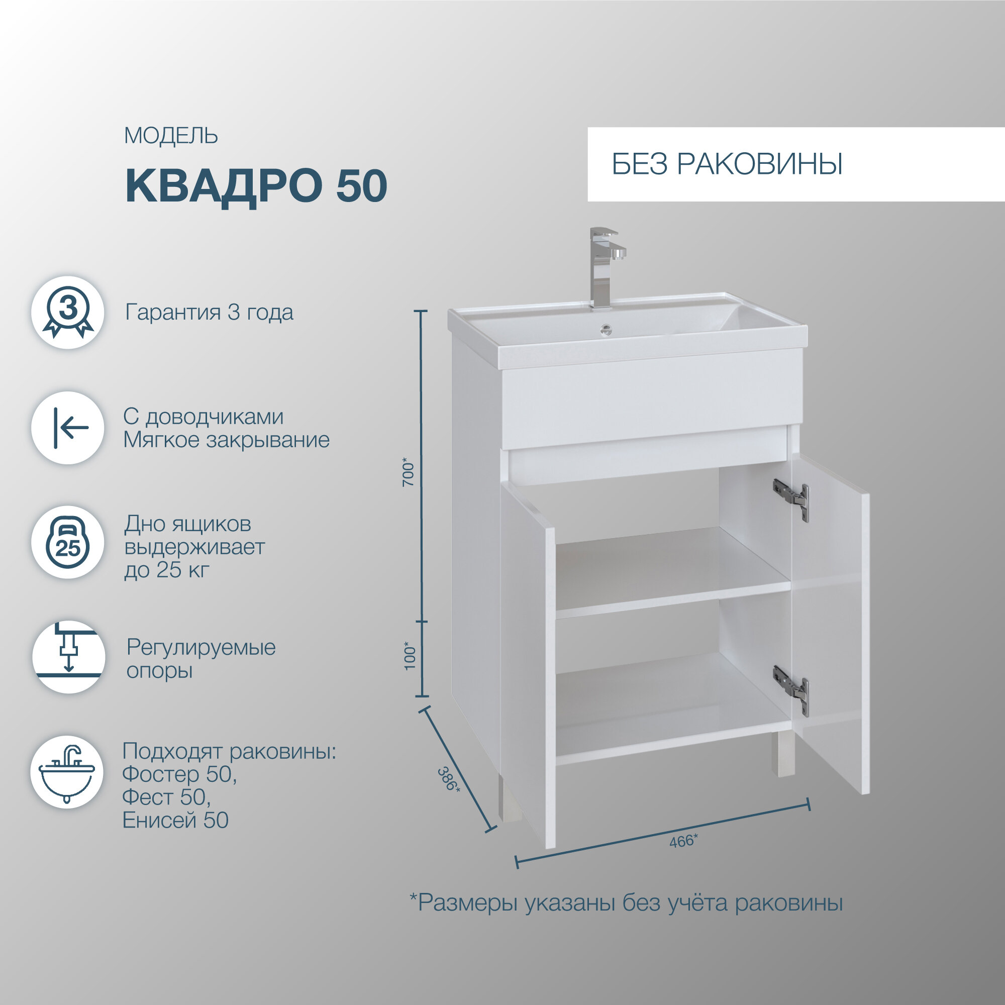 Тумба напольная SanStar Квадро 50 Без раковины для ванной комнаты, белая интересное: