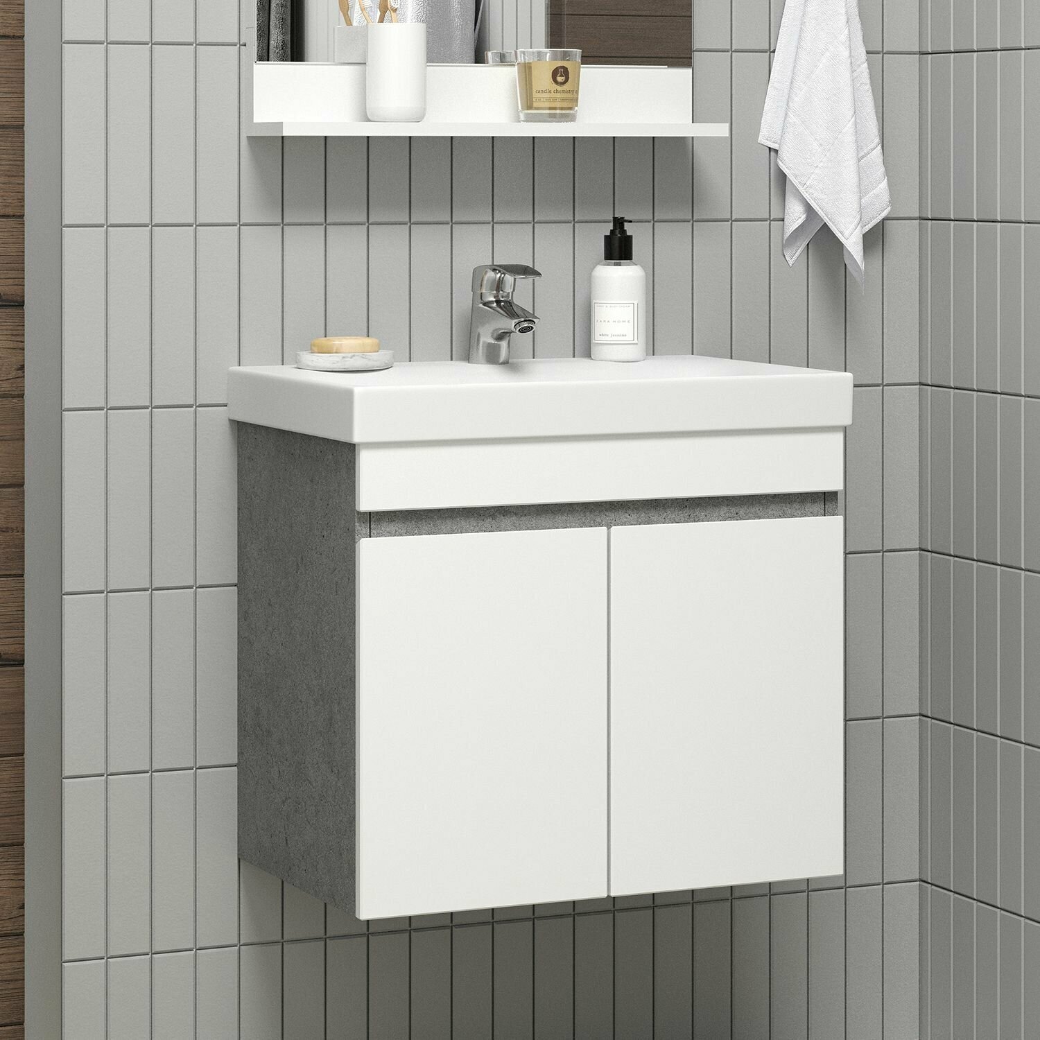 Тумба с раковиной для ванной Кристалл 50 белая.