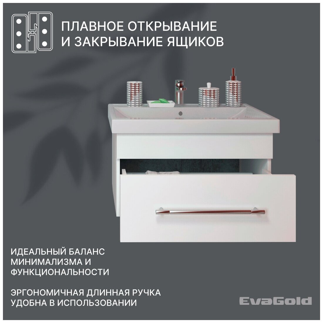 Тумба подвесная для ванной / под раковину EvaGold Leader 60 белая 1 ящик 38х56х45 интересное: