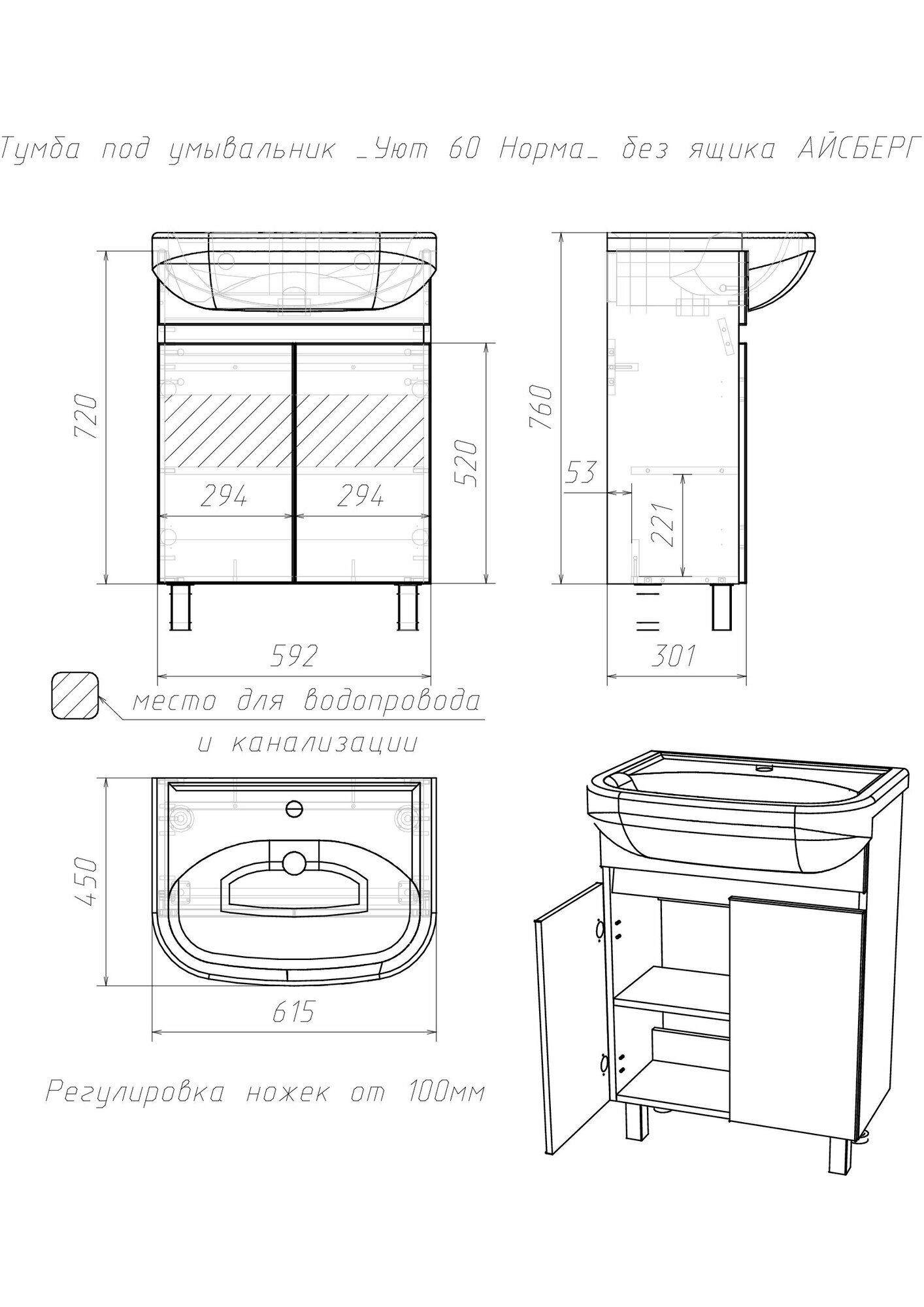 Тумба под умывальник "Уют 60 Норма" без ящика айсберг интересное: