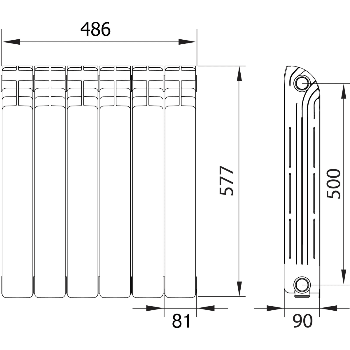 Радиатор 500/90 6 секций боковое подключение алюминий белый