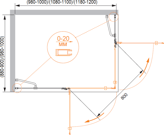 Душевой уголок Black&White Stellar Wind S101 800х800