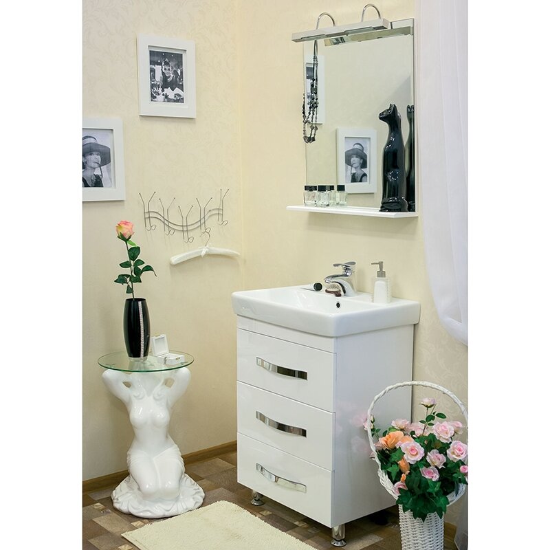 Тумба с раковиной для ванной Кристалл 50 белая.