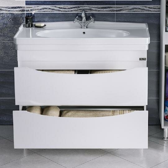 COMFORTY. Тумба-умывальник "Сочи-100" белый глянец с раковиной Эльбрус-100