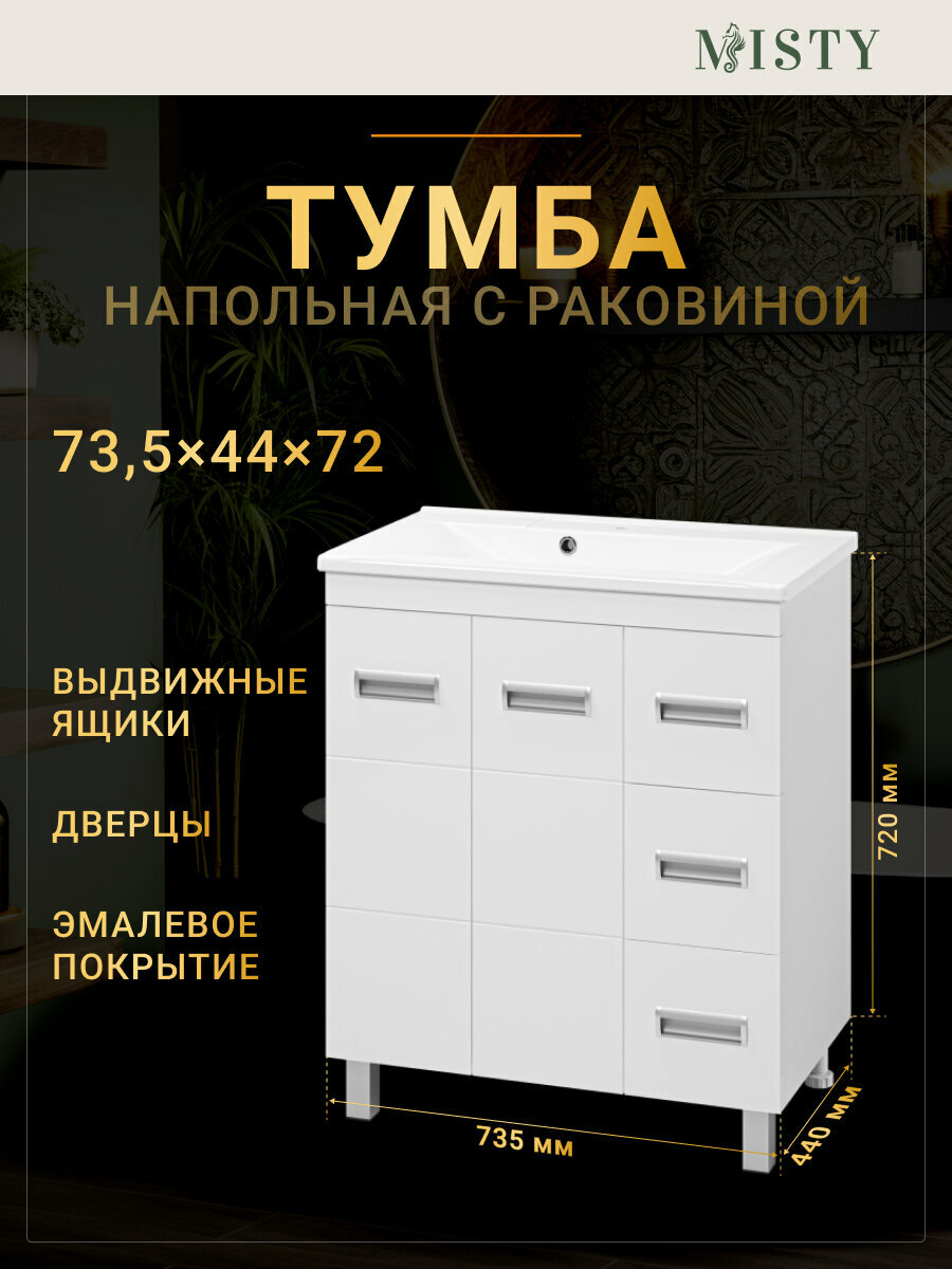 Тумба напольная Misty Алиса - 75 тумба 1 ящ. напольная белая эмаль + раковина
