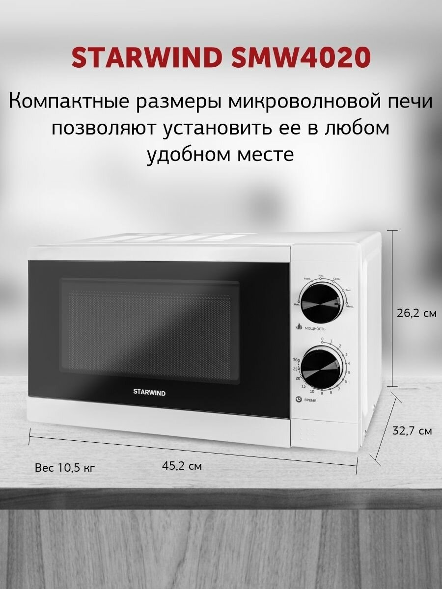 Микроволновая печь - СВЧ Starwind SMW4020, 20 л, 700 Вт, белый