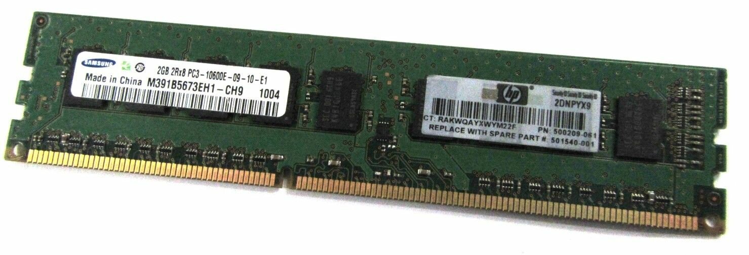 Память 500670-B21, 501540-001 HP 2GB Dual Rank x8 PC3-10600 Unbuffered