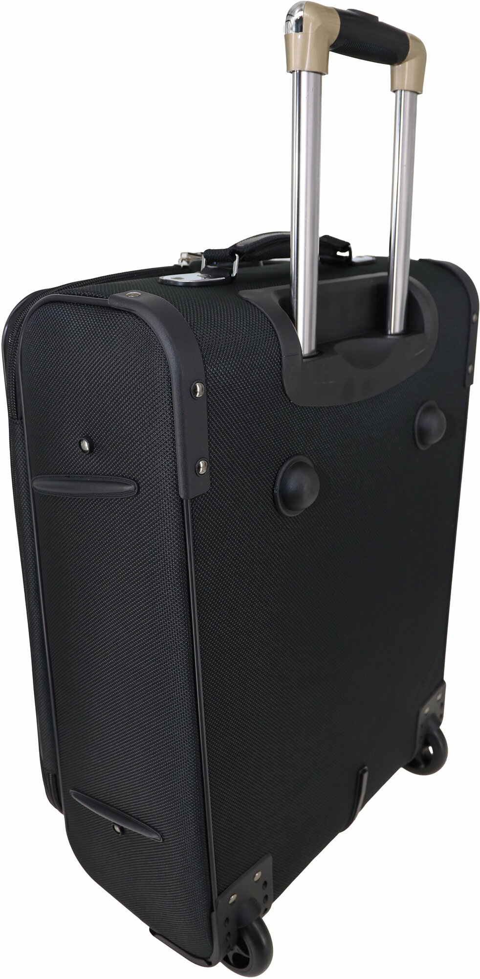 Чемодан Рион+ (RION+) R401, Ткань, 61 см 67 литра 2 колеса, M (56-70 см), трансформер, усиленный до 25кг, черный