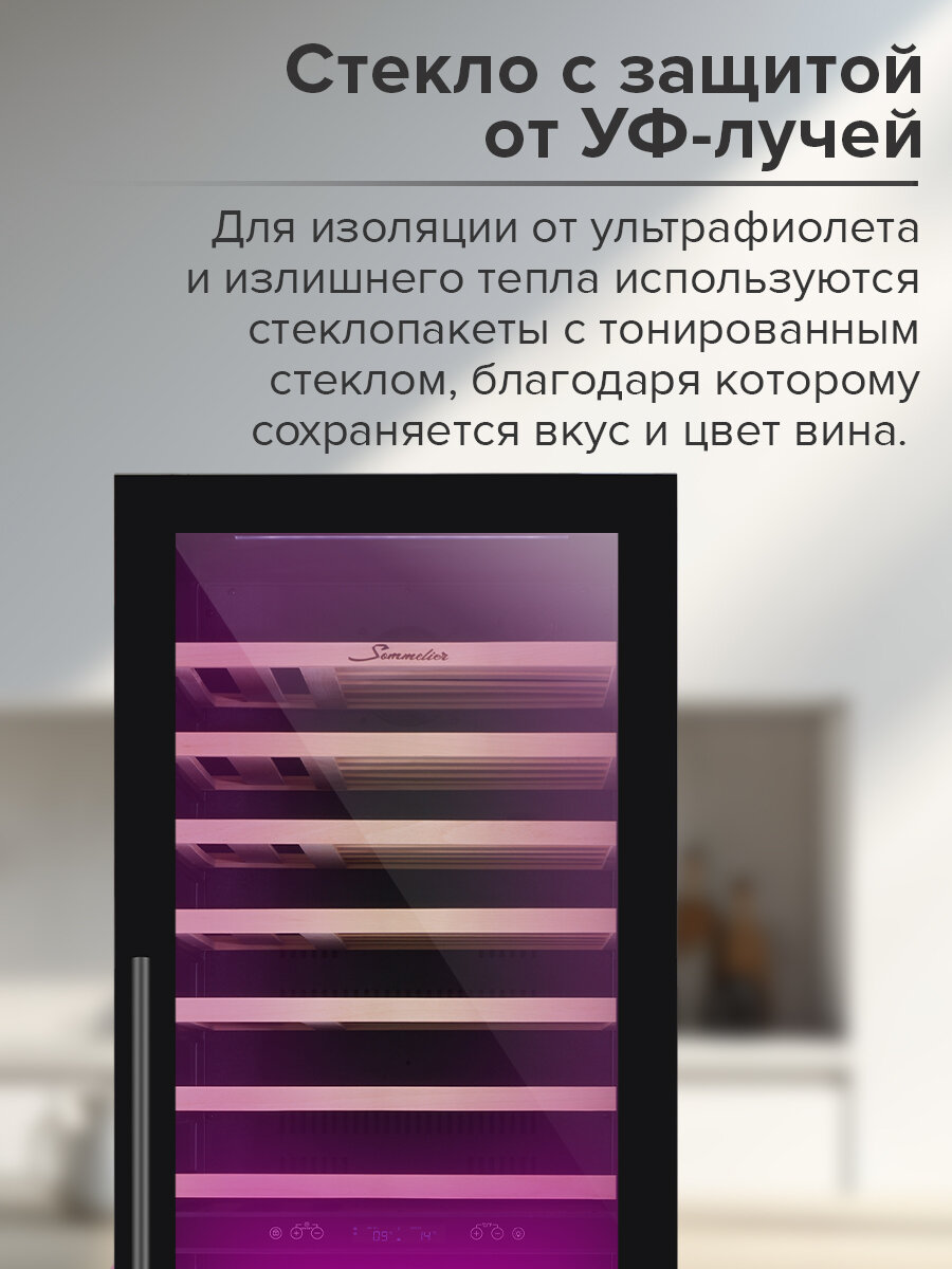 2) Диапазон температур от 5 до 20 градусов 3) Стекло с УФ защитой 4) Контроль влажности |
