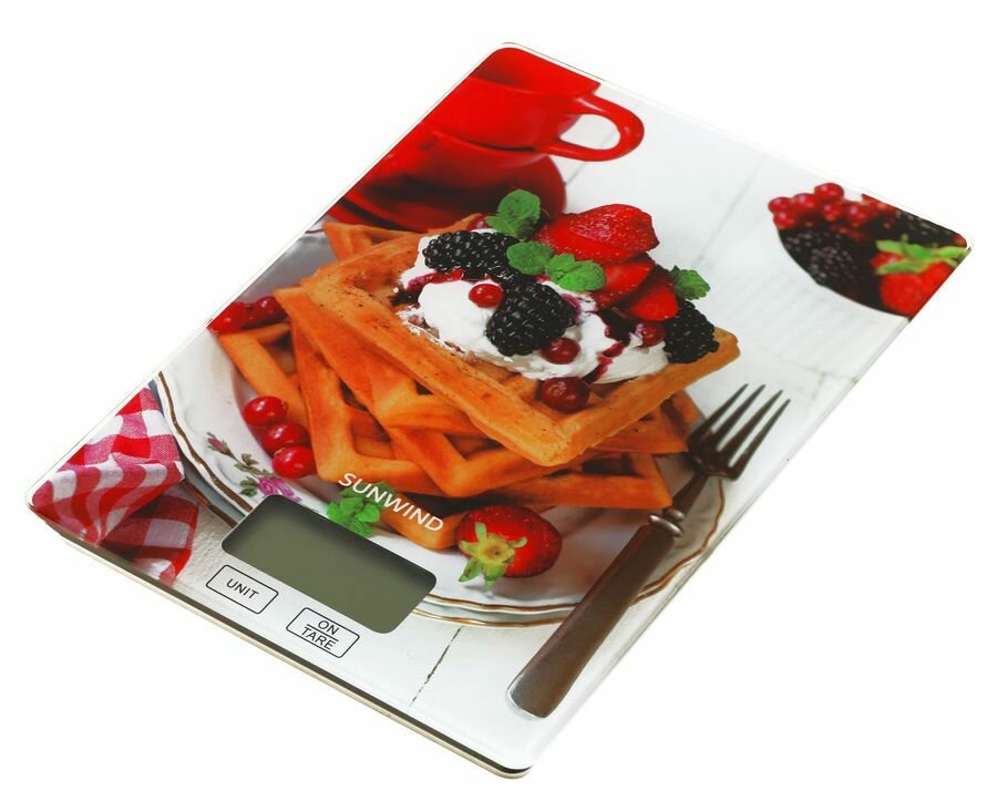 Весы кухонные электронные SunWind SWS100 рисунок/вафли интересное: