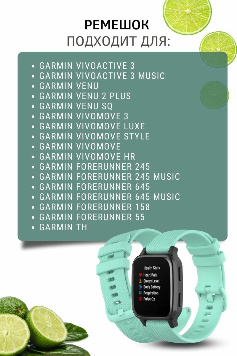 СохранитьCиликоновый ремешок PADDA Ellipsis для смарт-часов Garmin Vivoactive / Fenix / Venu / Forerunner / Vivosmart (ширина 20 мм), светло-бирюзовый интересное: