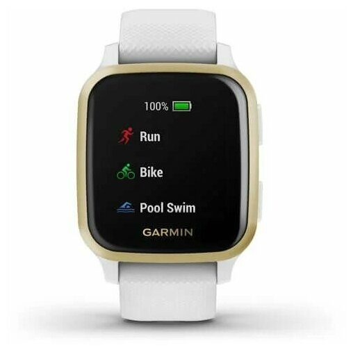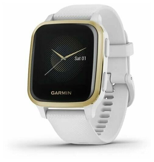 Купить Garmin Venu Sq белый с золотистым алюминиевым безелем и с силиконовым ремешком