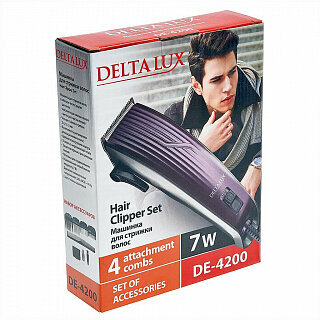 Машинка для стрижки DELTA LUX DE-4200 темно-сиреневый, 7 Вт, 4 съемных гребня (24) интересное: