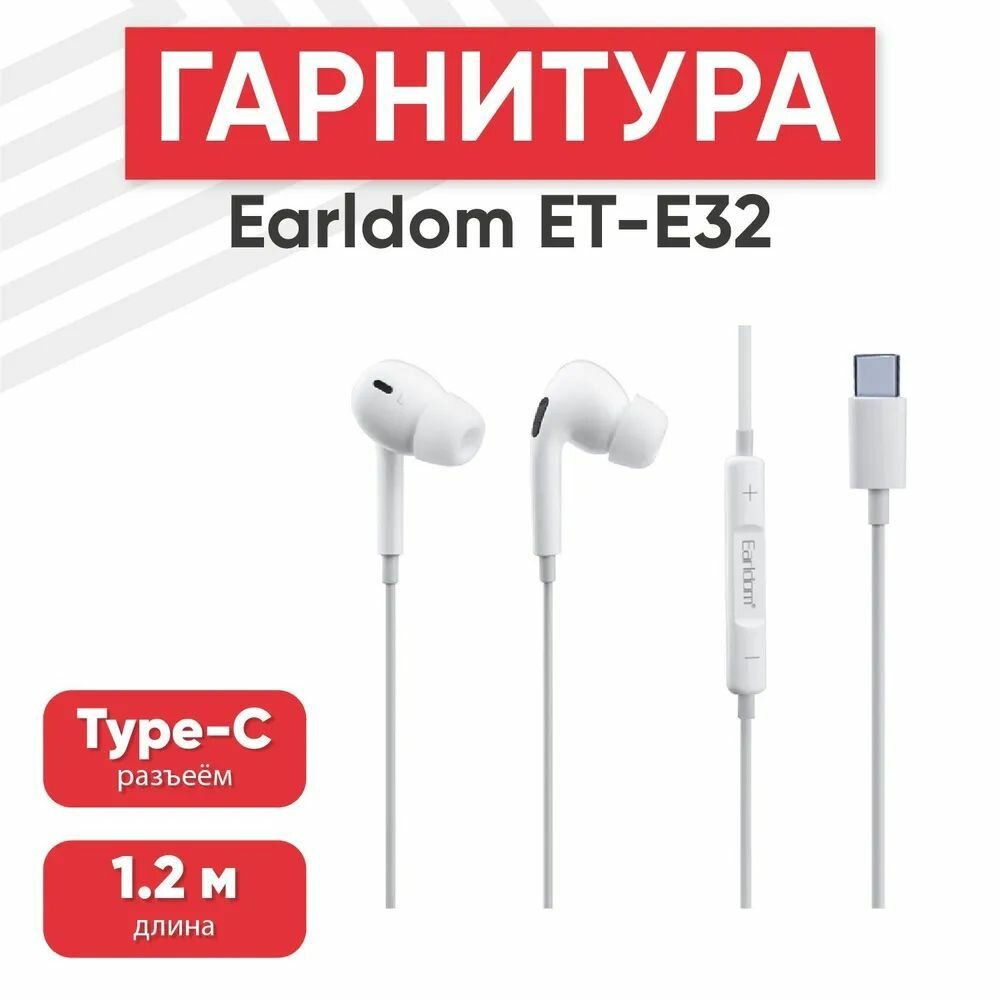 Гарнитура Earldom ET-E32 Type-C, громкость +/-, вставная, 1.2м (белый) интересное: