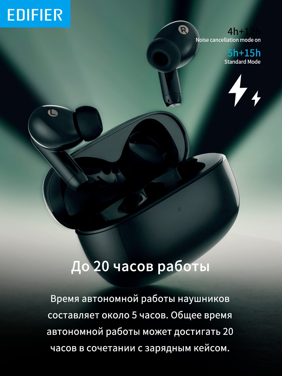 СохранитьБеспроводные блютуз наушники с шумоподавлением, Гарнитура вкладыши Edifier, с кейсом, черные интересное: