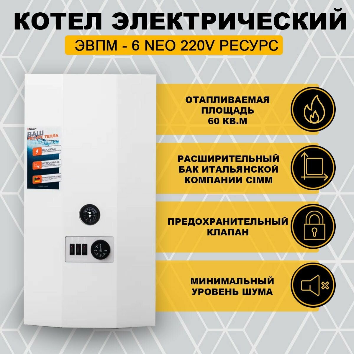Электрический котел Ресурс-ЭлектроТерм ЭВПМ-6 NEO, одноконтурный интересное: