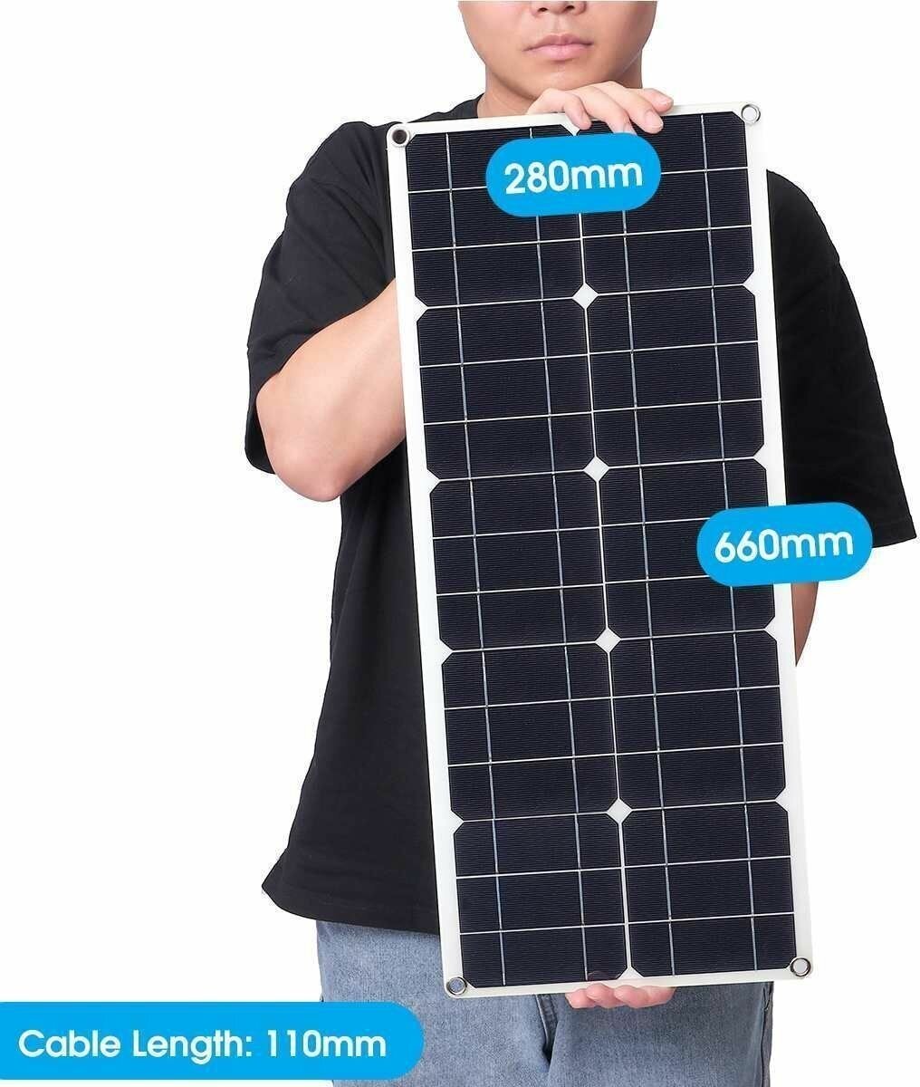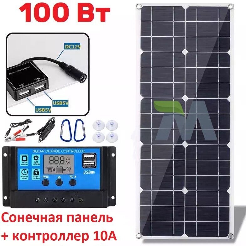 Монокристаллическая солнечная панель (батарея) универсальная 100Вт/ 18В/ 2 USB/ с контроллером на 10А интересное:
