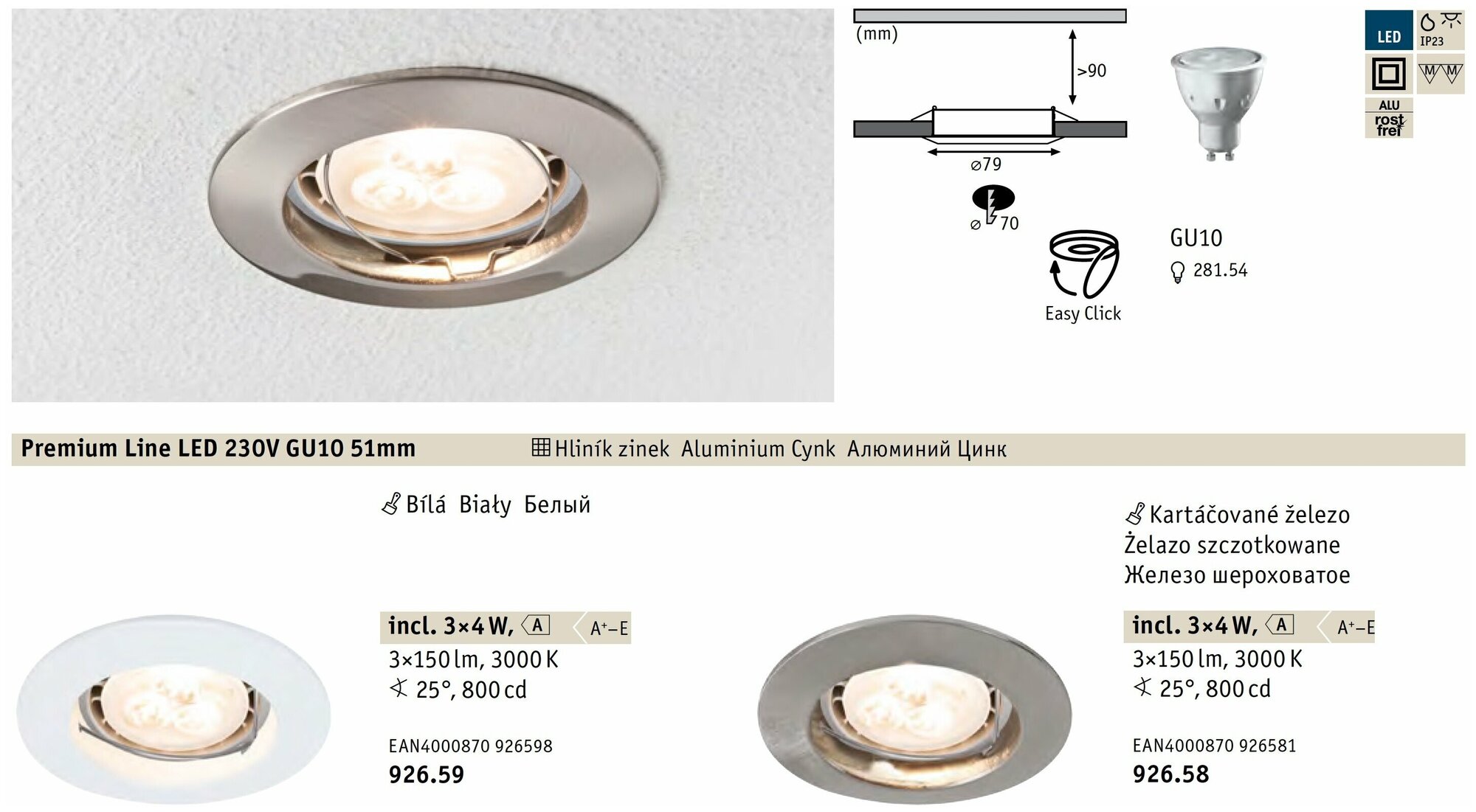 Светильник встраиваемый Paulmann Power 4Вт 150Лм 3000К IP23 LED GU10 Железо шероховатое Алюминий/Цинк Не димм Набор 3шт. D79мм 92658 интересное: