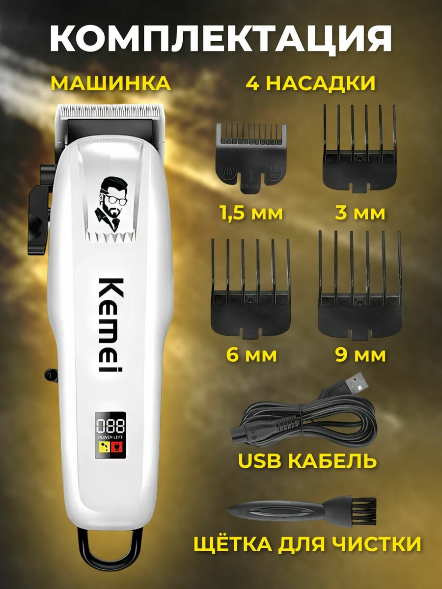 Триммер для бороды и усов Мультишоп Kemei KM-809A, белый интересное:
