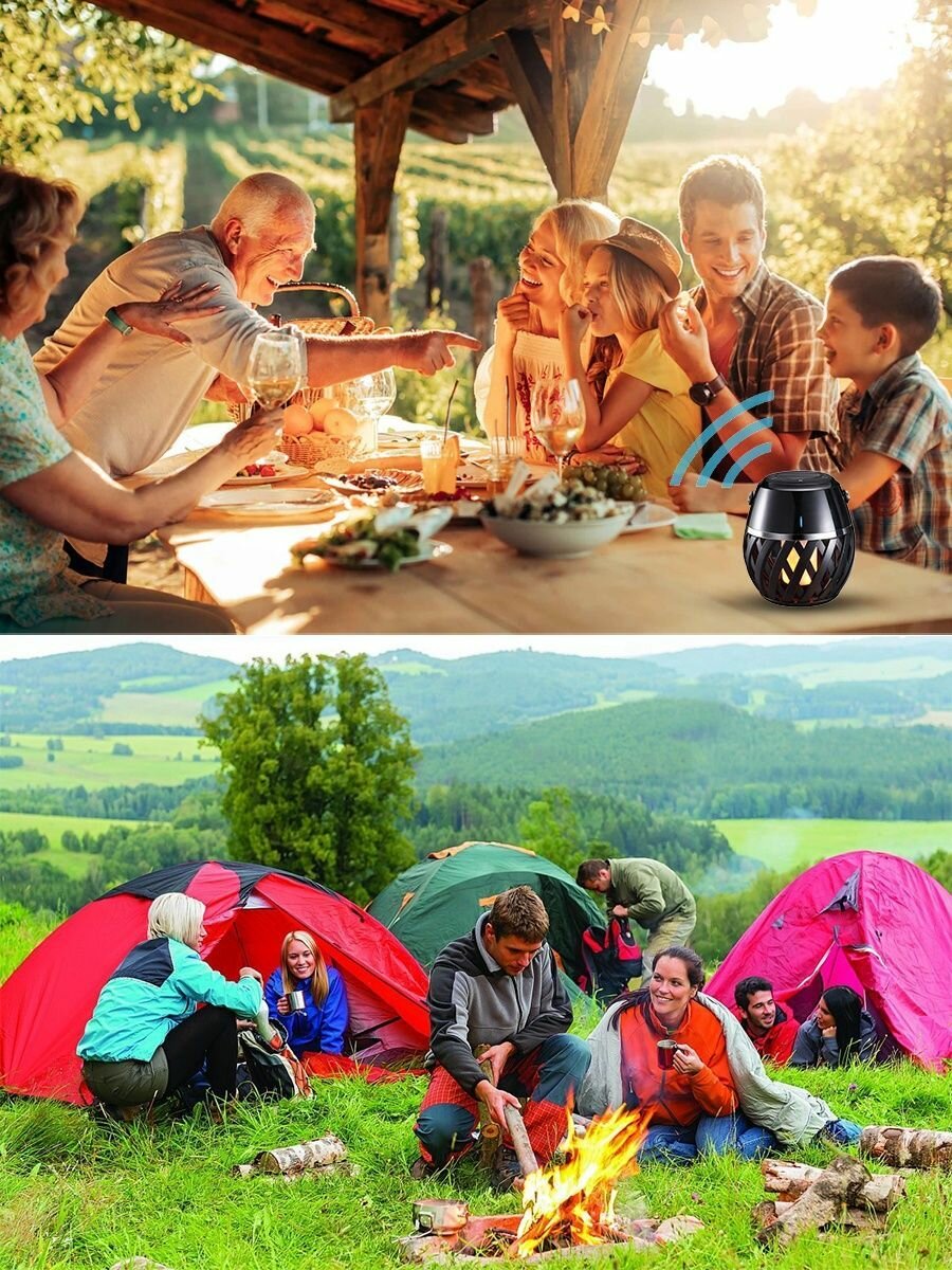 ULD-R201 LED/FLAME BLACK Светод. светильник с bluetooth колонкой 75db,эф. пламени,встр.аккум.1800mAh