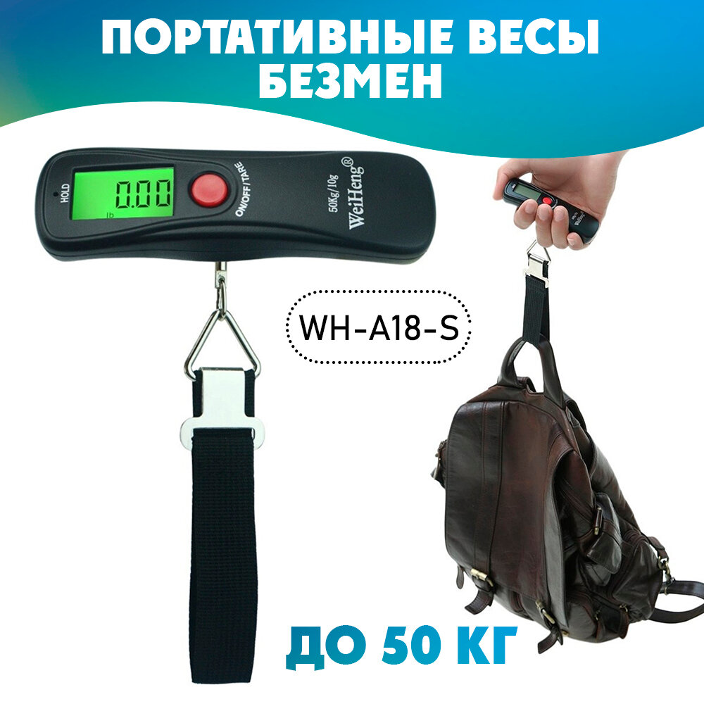 Весы багажные, безмен электронный WH-A18S до 50 кг, с ремешком