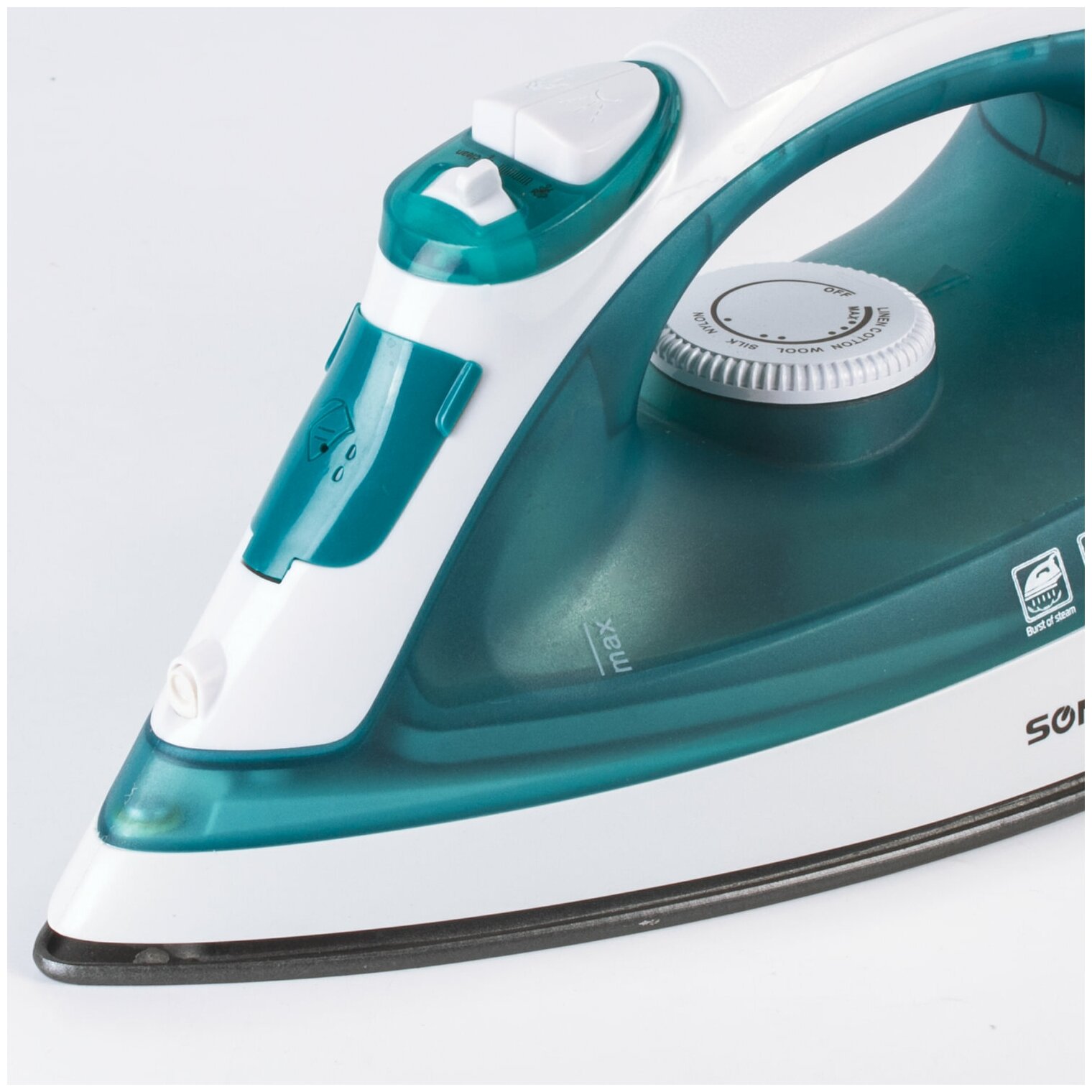 Купить Утюг SONNEN SI-227, 2000 Вт, антипригарное покрытие, бирюзовый/ белый, 453505