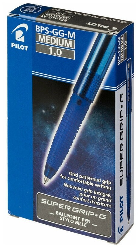 BPGP-10R-M-L Ручка шариковая автоматическая Pilot "Super Grip" синяя, 1,0мм, грип