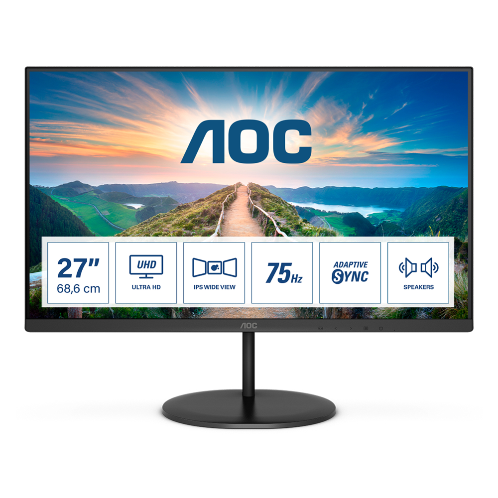 Купить AOC Монитор LCD 27'' [16:9] 3840x2160(UHD 4K) IPS, nonGLARE, 350cd/m2, H178°/V178°, 1000:1, 20M:1, 1.07B, 4ms, VGA, 2xHDMI, DP, Tilt, Speakers, Audio out, 3Y, Black