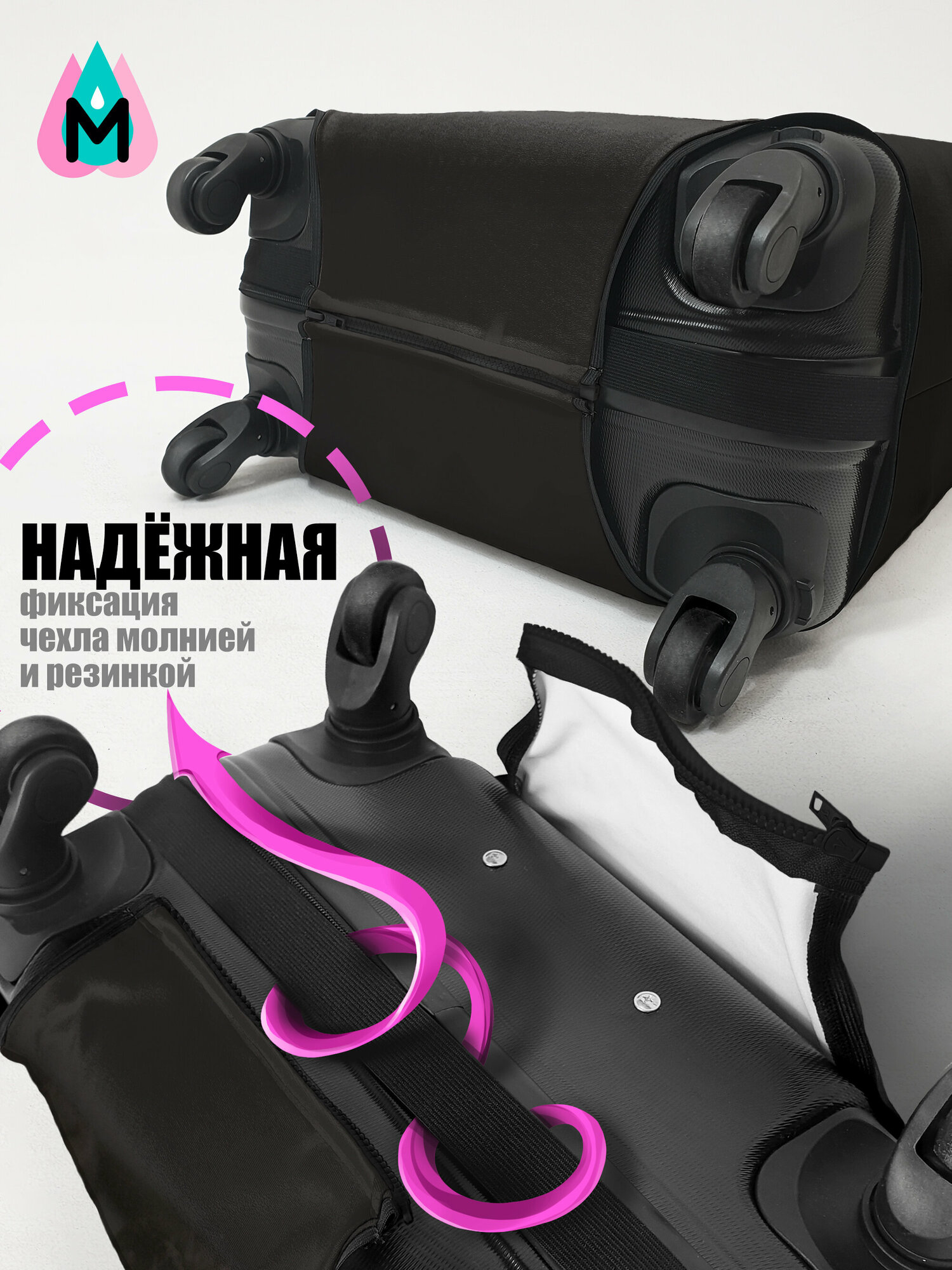 | Минусы: | размер маломерит, едва смогли натянуть на чемодан. может, растянется |