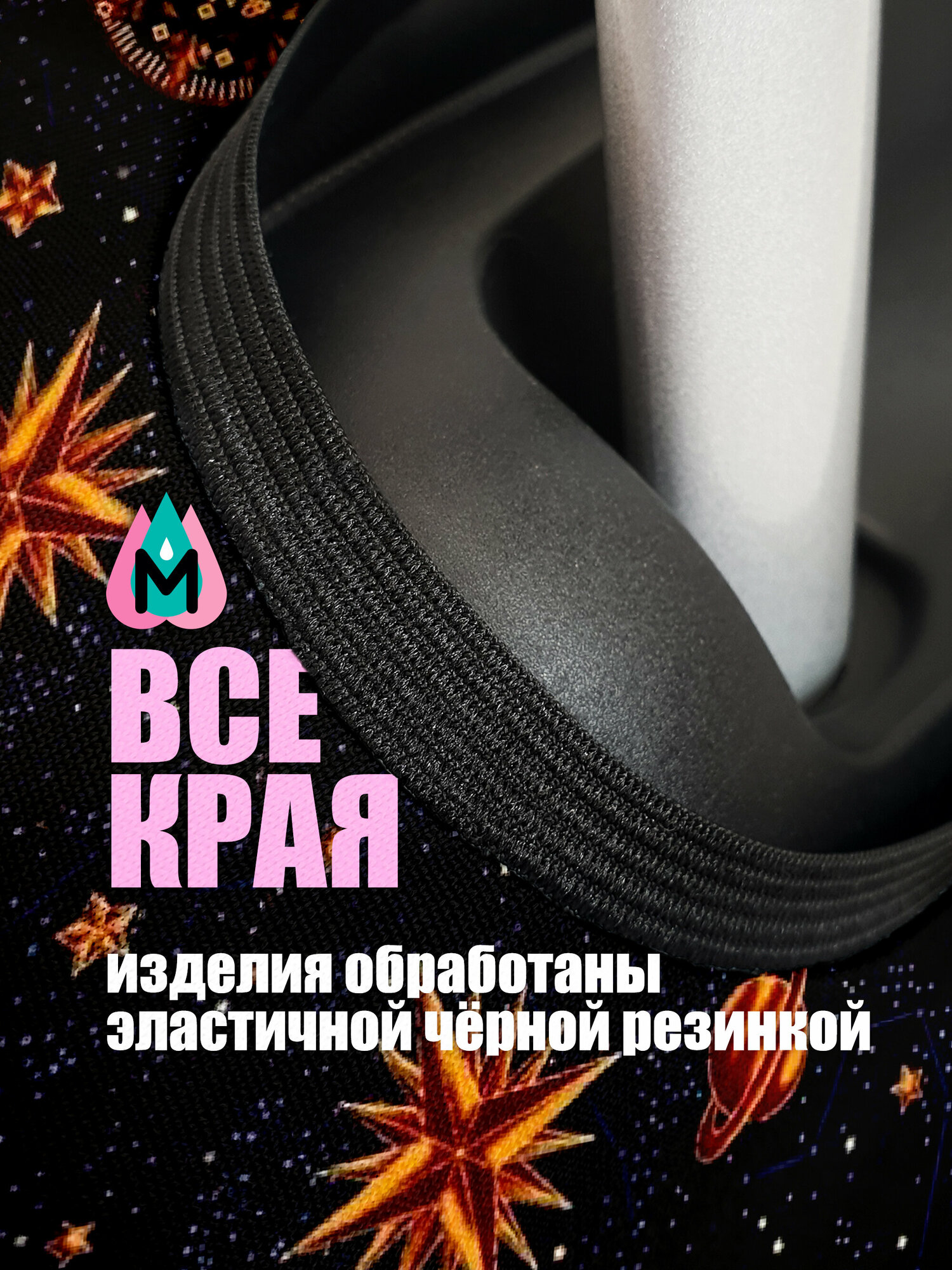 | Плюсы: | Хорошо сшит, с резинками, обработанными отверстиями для ручек, широкой удобной молнией внизу. Интересный принт. |