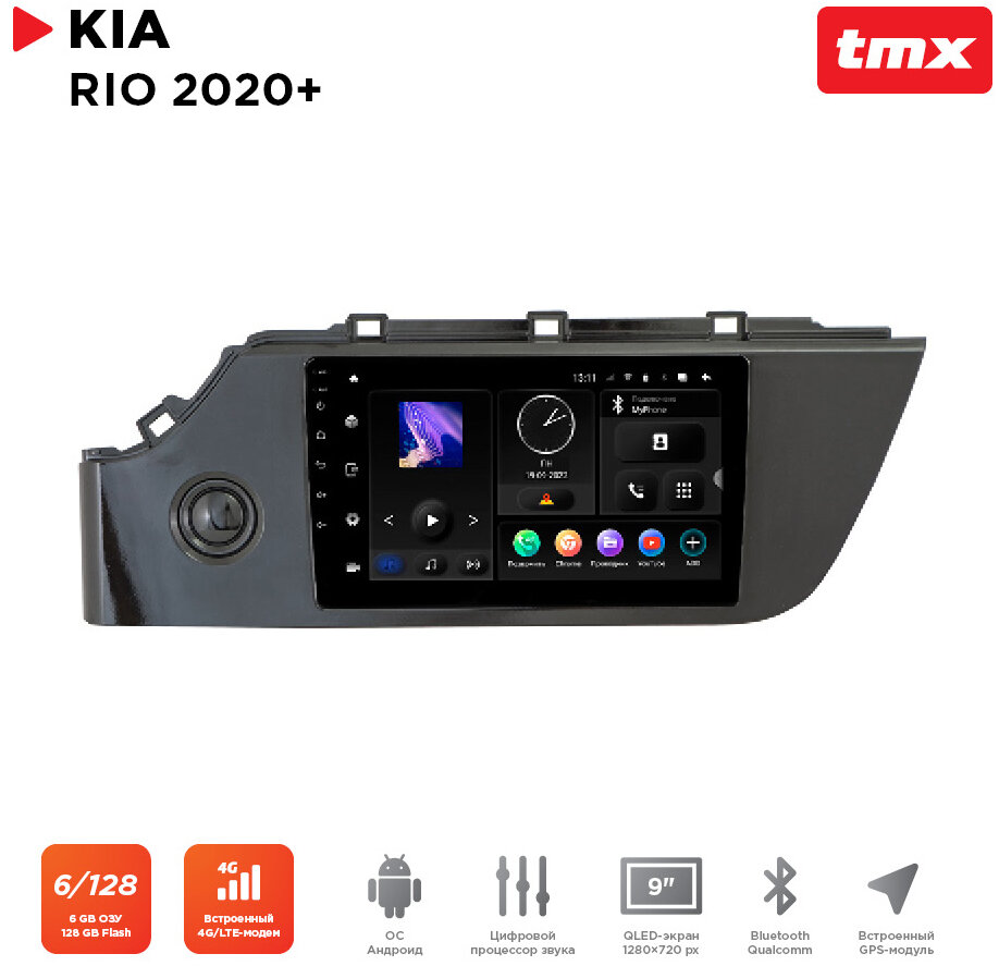 Автомагнитола KIA Rio 20+ (Incar TMX-1812-6) Android 10, QLED 1280x720, 8 ядер, BT 5.0, 4G, Wi-Fi, DSP, память 6Gb+128Gb, 9 дюймов интересное: