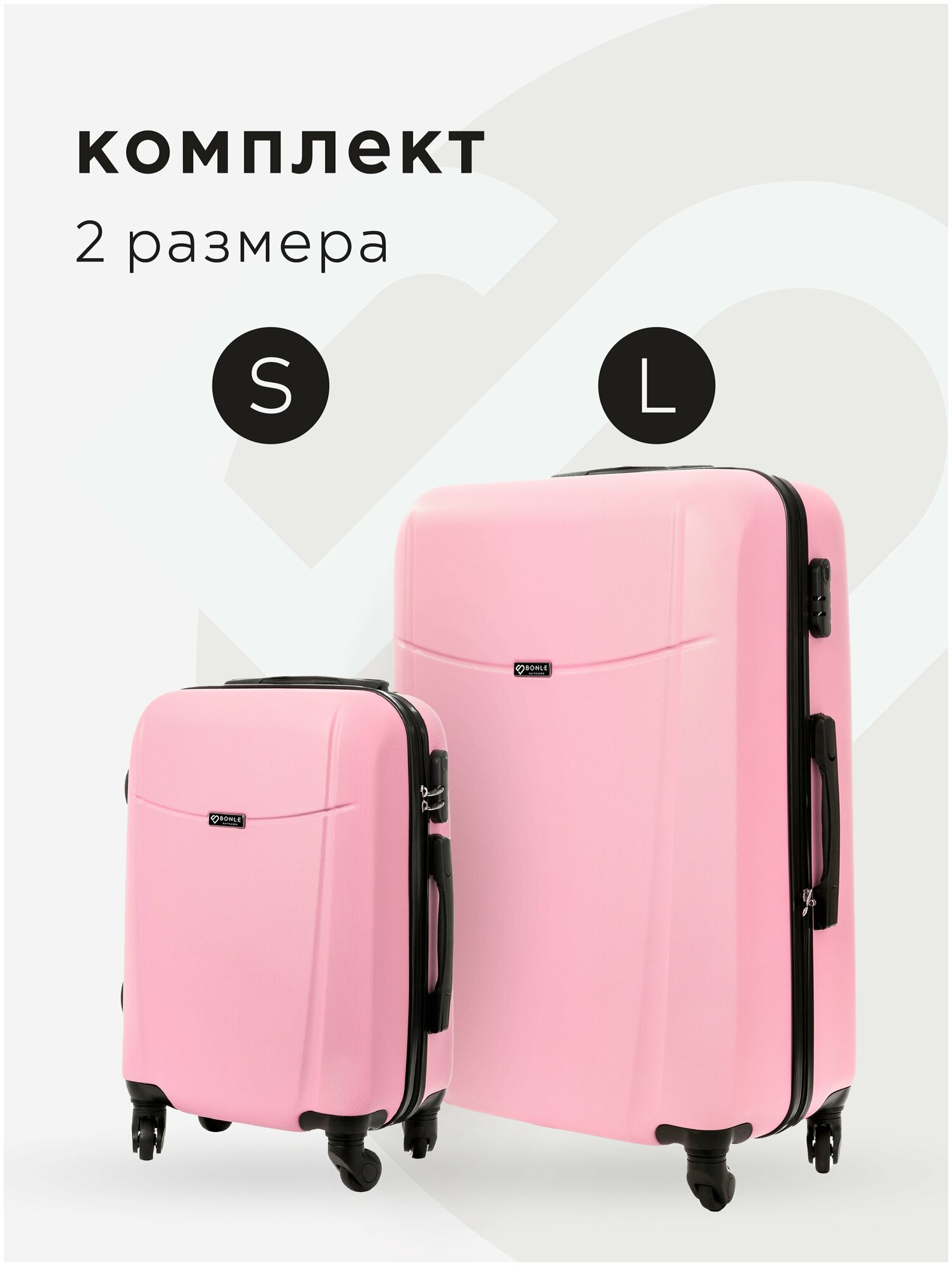 Купить Комплект чемоданов 2шт, Тасмания, Нежно-розовый, размер L,S маленький, большой, ручная кладь,дорожный, не тканевый